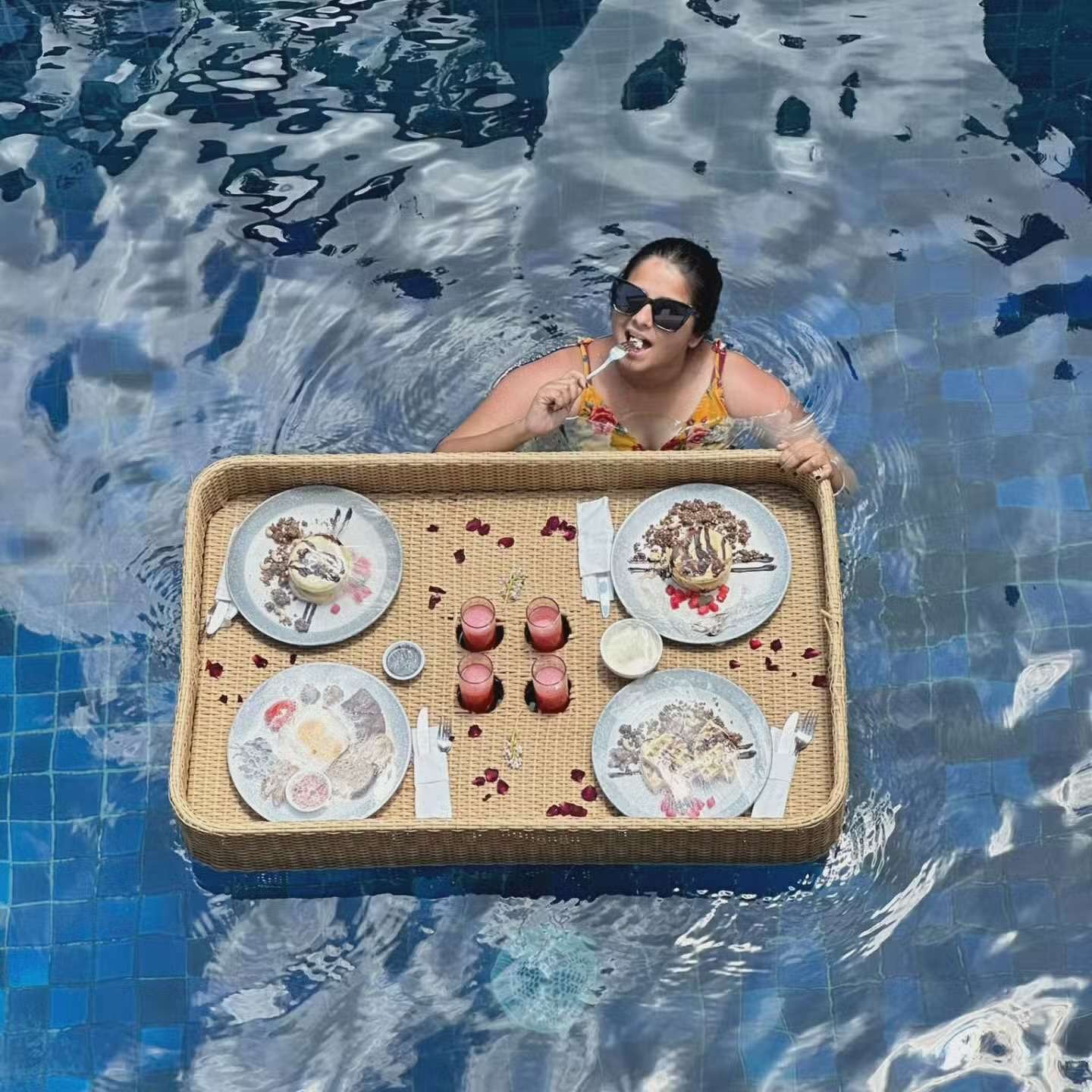 எத்தனை முறை பார்த்தாலும் சளிப்பு ஏற்படாதஇந்த புகைப்படங்களை பார்த்த ரசிகர்கள் சாப்பாட்டு தட்டோடு கடல் நடுவே நின்றிருக்கும் காட்சியை பார்த்து அவர்களும் சாப்பிட வரவா? என்ற கேள்வியை எழுப்பி இருக்கிறார்கள்.
