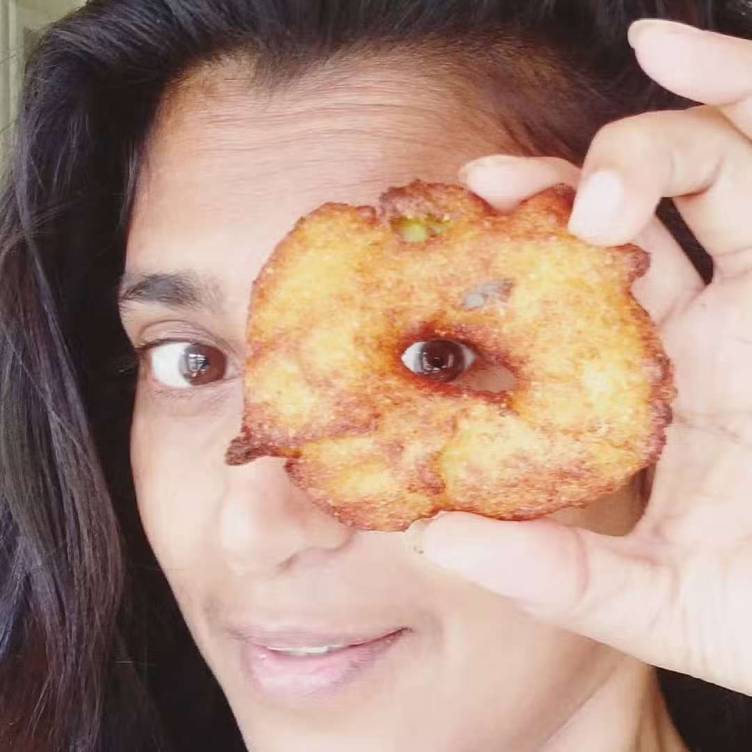 அந்த வகையில், சமீபத்தில் உளுந்து வடை சமைத்த இவர் அந்த உளுந்து வடையின் ஓட்டைக்குள் கண்ணை விட்டு பார்த்தபடி போஸ் கொடுத்திருக்கிறார்.