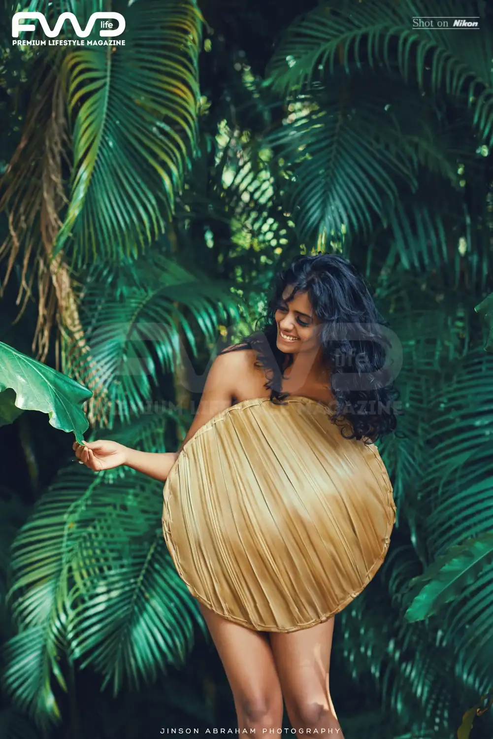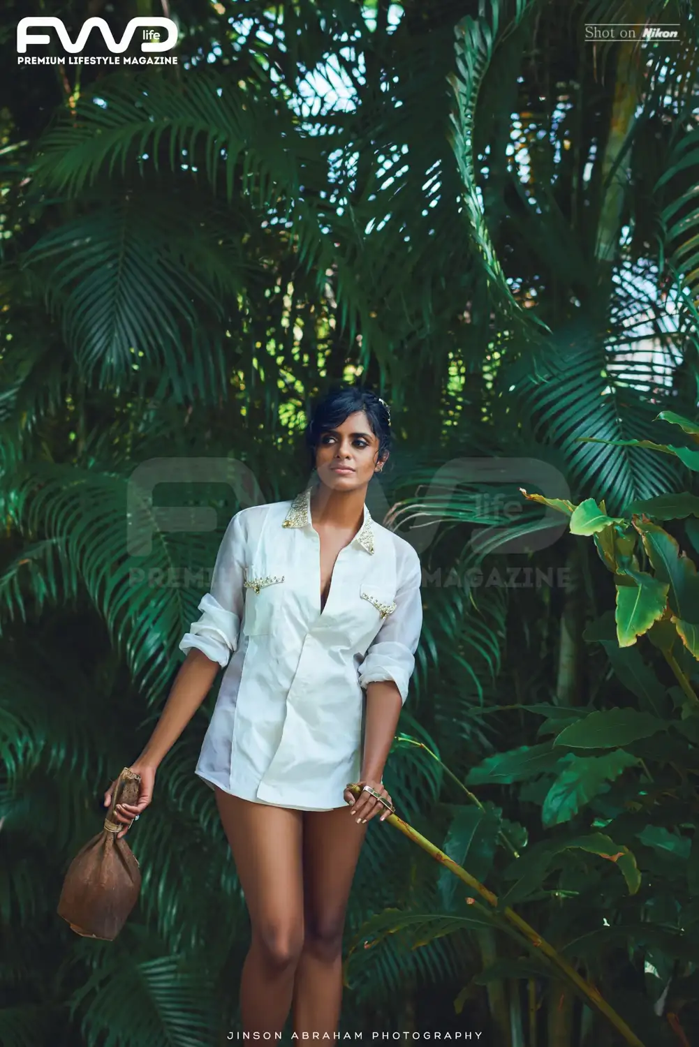 அந்த புகைப்படங்களில் அவர் டாப் மட்டும் அணிந்து, பேண்ட் அணியாமல் போஸ் கொடுத்திருந்தார். அவர் நின்றிருக்கும் போஸில், அவரது முழு தொடையழகும் எடுப்பாக தெரிந்தது.