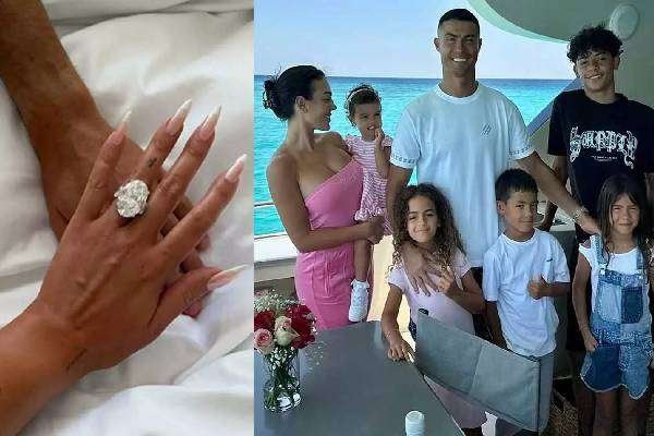 திருமணமே செய்யாமல் 5 குழந்தைகளை பெற்றெடுத்தனர் ரொனால்டோ - ஜார்ஜினா ரோட்ரிக்ஸ். தற்போது தன் காதலியை நிச்சயம் செய்து மோதிரம் மாற்றிய புகைப்படத்தை பகிர்ந்துள்ளார் ரொனால்டோ. விரைவில் இருவரின் திருமணம் நடக்கும் என்றும் கூறப்படுகிறது.