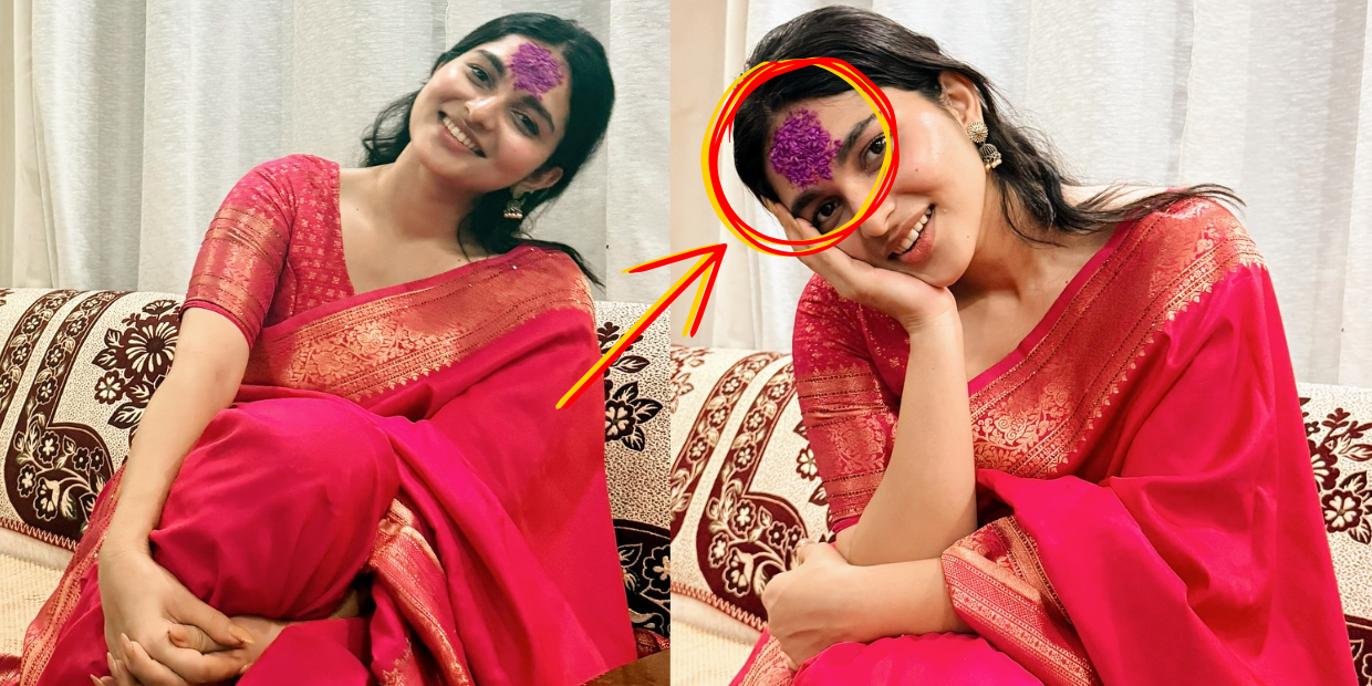 நடிகை கயாடு லோகர் தனது இன்ஸ்டாகிராம் பக்கத்தில் பகிர்ந்த இந்தப் புகைப்படங்களில், சிவப்பு நிற அரிசி மற்றும் தயிர் கலந்த சிவப்பு சிந்தூர் (வெர்மிலியன்) கொண்டு தயாரிக்கப்பட்ட தீகாவை நெற்றியில் அணிந்து, பாரம்பரிய அலங்காரத்தில் புன்னகைத்து காணப்படுகிறார்.