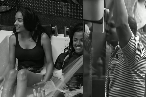 பெண்கள் குளிப்பதை எட்டி பார்த்த வாட்டர் மெலன் ஸ்டார்..