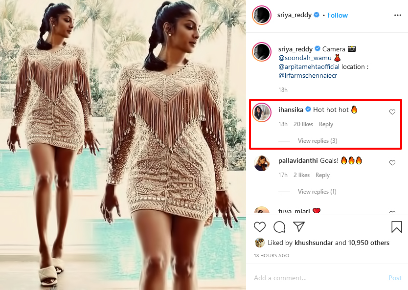 அதைப் பார்த்த நடிகை ஹன்ஷிகா Hot Hot Hot என ஆச்சர்யத்தோடு கமெண்ட் செய்துவருகின்றனர்.