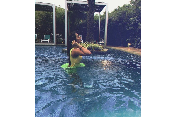 ஆம், நீச்சல் உடையில், நீச்சல் குளத்தில் சேடு போஸ் கொடுத்து எடுத்துக்கொண்ட புகைப்படத்தை வெளியிட்டு, இணையத்தை பற்ற வைத்துள்ளார்.