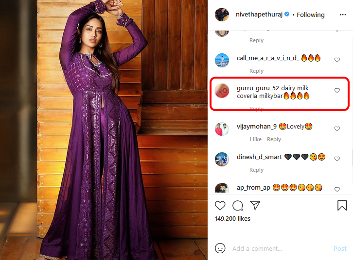 இதனை பார்த்த ரசிகர்கள் டெய்ரி மில்க் கவர்ல மில்கி பார் என்று அவரது அழகை வர்ணித்து வருகிறார்கள்.