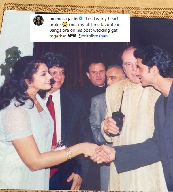 அது வேற யாரும் கிடையாது ரசிகர்களுக்கு பிடித்த பாலிவுட் நடிகர் ரித்திக் ரோஷன் தான். இதை சமீபத்தில் அவர் பகிர்ந்துள்ளார். நடிகர் ரித்திக் ரோஷன் மீது மீனா உருகி உருகி காதலித்ததாகவும் எப்படியாவது தன்னுடைய காதலை ரித்திக் ரோஷன் அவர்களிடம் கூறி திருமணம் செய்து கொள்ள வேண்டும் எனவும் நினைத்தாராம்.
