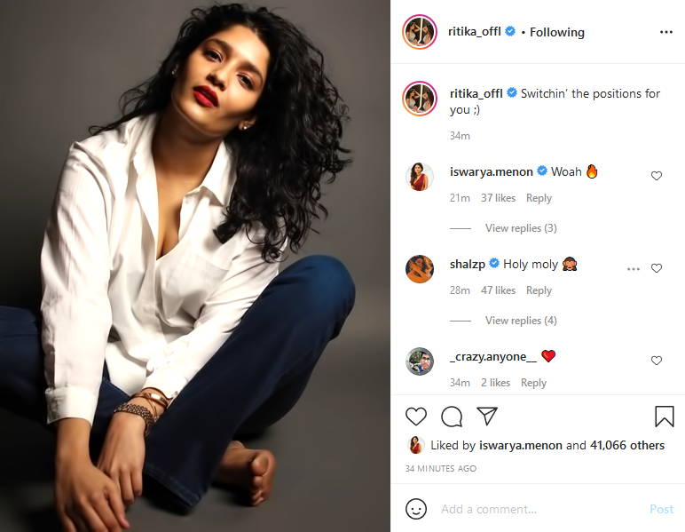எப்போதுமே தன்னுடைய ரசிகர்களுடன் இன்ஸ்டாகிராம் பக்கத்தில் அரட்டை அடித்துக்கொண்டு பொழுதை கழித்து வருகிறார்.அடிப்படையில் உண்மையான பாக்ஸரான ரித்திகா சிங், பாக்ஸராக இருந்து புகழ் பெற்றதைவிட சினிமாவுக்கு வந்த புகழ் பெற்றது தான் அதிகம்.