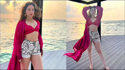 மாலத்தீவில் நடிகை தமன்னா: பிங்க் நிற பிகினி வ..