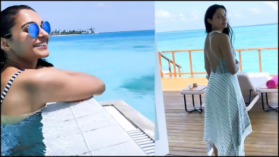 தண்ணீரில் நீச்சல் உடையில் விதவிதமான போஸ் கொடு..