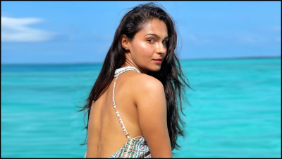 மதுக்கோப்பையை முத்தமிடும் கடல் அலை: ஆண்ட்ரியா..