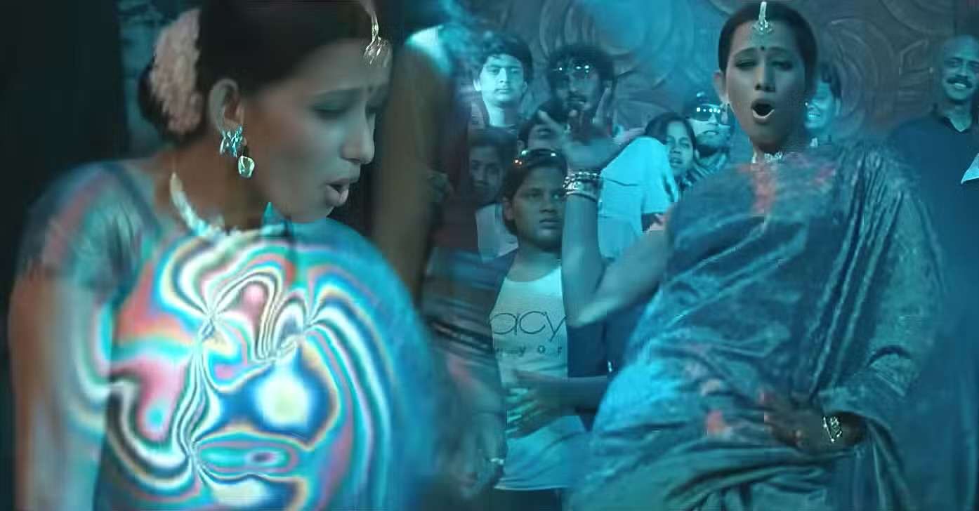அகநகநக சிரிப்புகள் அழகா.. என்ற பாடலில் குடும்ப பெண்ணாக புடவையை கட்டிக்கொண்டு பார்ட்டியில் நுழையும் அவர் ஒரு கட்டத்தில் போதை தலைக்கேறிய பிறகு தன்னுடைய மாராப்பை கழட்டி விட்டு குலுங்க குலுங்க ஆட்டம் போடுவார் நடிகை சஞ்சனா சிங்.