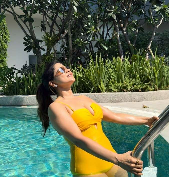 தற்போது சாக்ஷி அகர்வால் தாய்லாந்து ட்ரிப்பில் நீச்சல் உடையில் இருக்கும் புகைப்படங்களை வெளியிட்டு இருக்கிறார்.