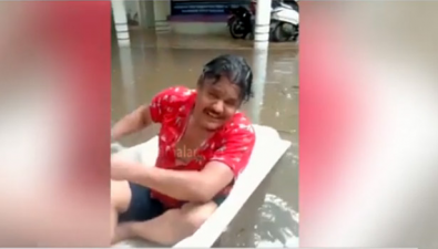 கனமழையால் தேங்கிய தண்ணீர் - படகு ஓட்டி அசத்தி..